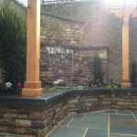 Outdoor kitchen, arbor,and small water feature