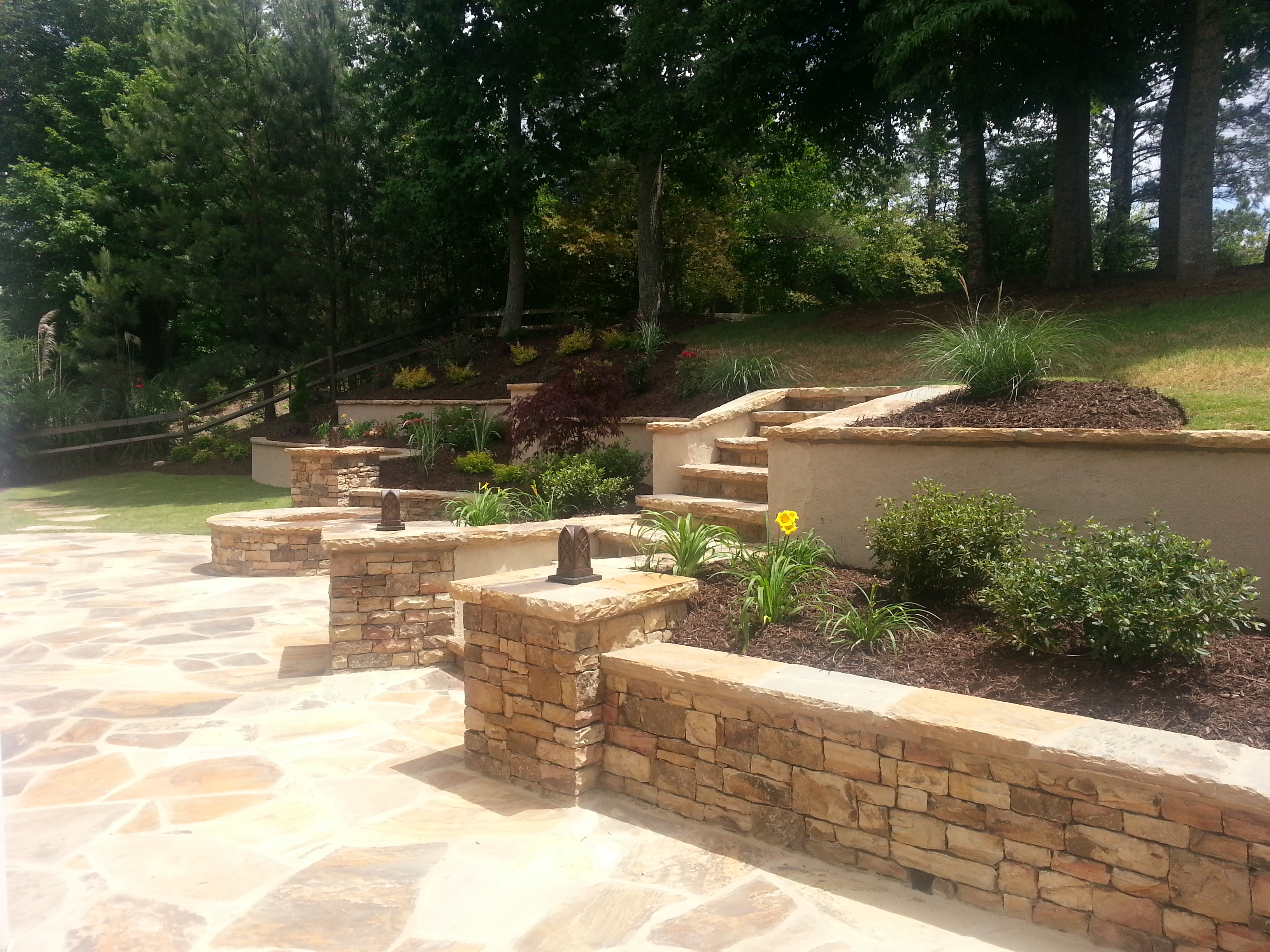 Tiered Retaining Wall, Fire Pit, and Large Patio